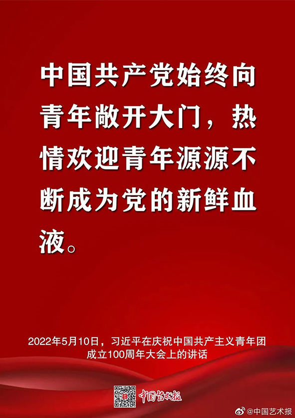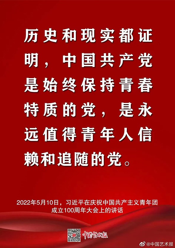 习总书记说,1922年5月5日,在中国共产党直接关怀和领导下,中国共产主义青年团宣告成立。这在中国革命史和青年运动史上具有里程碑意义!历史充分证明,只有坚持党的领导,共青团才能团结带领青年前进,推动中国青年运动沿着正确政治方向前行。