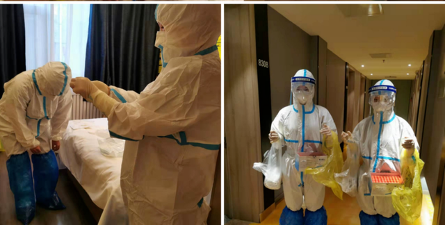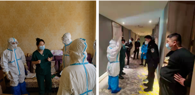 三名医务人员于2月26日凌晨一点抵达汉庭隔离酒店,作为第一批到达酒店的工作人员,三人与酒店相关负责人立即进行工作对接,并在区中心医院专家指导下马不停蹄地安排酒店各项防疫工作。