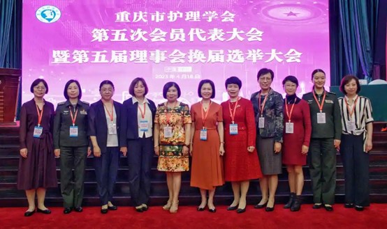 会上投票选举产生新一届领导班子,重庆医科大学附属第一医院护理部主任赵庆华连任重庆市护理学会第五届理事长,重庆松山医院护理部主任王楠新任副理事长兼秘书长,重庆医科大学附属第二医院护理部主任甘秀妮、陆军军医大学第一附属医院副院长刘蕾、陆军军医大学第二附属医院宋副院长彩萍、重庆市人民医院护理部主任官莉、重庆市中医院护理部主任杨光静、重庆市第五人民医院护理部主任林玉筠、重庆爱尔眼科总院总监张绍蓉任副理事长,陆军军医大学教授任辉任监事。