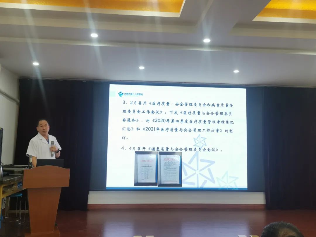 会议上,医务科李建岗主任从医疗质控的角度对临床各科室的工作进行了总结,汇报了秀人网 新科室的建设与申报情况。指出工作中存在的不足,并以不断提高和改进医疗质量为目标,对2021年下半年工作做出了计划。